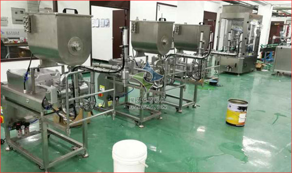 產(chǎn)品介紹: 雙頭臥式辣椒醬灌裝機是星火公司最新研制的,該機主要專門針對油料分離較快、立式攪拌不能解決的的顆粒醬類物料的灌裝,如牛肉醬、香辣醬、豆辨醬、鮮辣醬、豆豉及郫縣豆醬等醬類灌裝。本機采用微機(PLC)控制,具有生產(chǎn)效率高、計量精確等特點。該設(shè)備所灌裝的是粘稠醬料產(chǎn)品,尤其是帶有顆粒的醬料,它是最理想的醬料灌裝機。 雙頭臥式辣椒醬灌裝機廠房樣機展示: