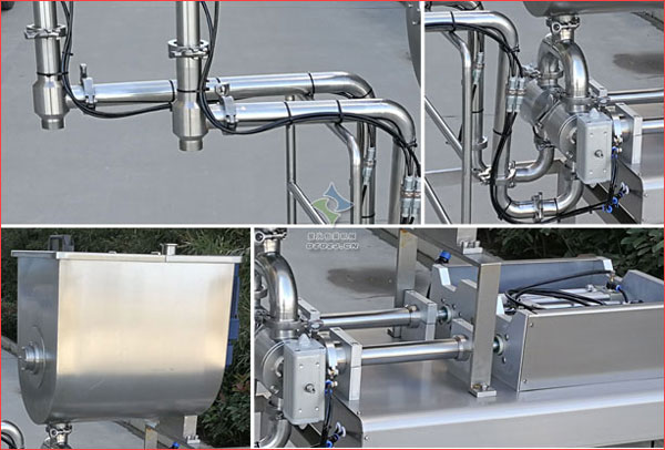 設(shè)備特點: 1、整機結(jié)構(gòu)緊湊,簡單,本機采用不銹鋼制造,不僅美觀且能滿足具有腐蝕性的液體及衛(wèi)生要求較高的食品類包裝。 2、配帶攪拌功能,解決了,辣椒醬等顆粒物料的分層現(xiàn)象,并且使灌裝更加精確。 3、本機是在我司顆粒漿狀灌裝機技術(shù)的基礎(chǔ)上,進行改造和創(chuàng)新設(shè)計的產(chǎn)品,結(jié)構(gòu)簡單、精確度高、操作更加簡便。 細節(jié)展示: