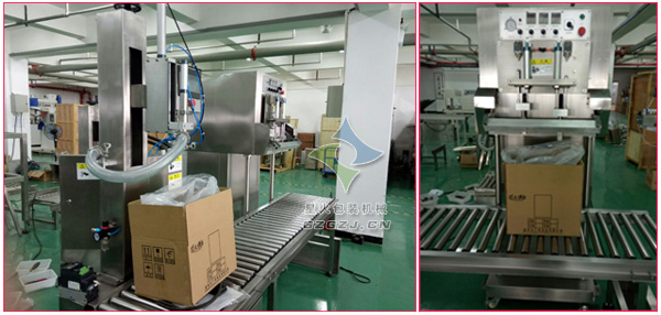 產(chǎn)品用途: 盒裝袋醬料灌裝封口機(jī)主要針對(duì)重量5~50KG的醬料、芝麻醬、火鍋底料、豆瓣醬等高粘度產(chǎn)品的盒裝袋包裝形式的灌裝封口機(jī),全不銹鋼材質(zhì),美觀大方,且能滿足具有腐蝕性的液體及衛(wèi)生要求較高的食品類(lèi)包裝。 產(chǎn)品詳情: 盒裝袋醬料灌裝封口機(jī)是由醬料稱(chēng)重式灌裝機(jī)和立式真空封口機(jī)組成,是針對(duì)盒裝袋醬料包裝形式而研制。真空封口系統(tǒng)采用雙氣缸雙氣嘴結(jié)構(gòu),抽氣速度更快,可充入氮?dú)獾榷栊詺怏w,可有效延遲產(chǎn)品保質(zhì)期,根據(jù)袋子厚度可選用單面、雙面加熱封口系統(tǒng),密閉性強(qiáng),封口平整美觀。 星火廠房芝麻醬稱(chēng)重灌裝封口機(jī)樣機(jī)細(xì)節(jié)展示: