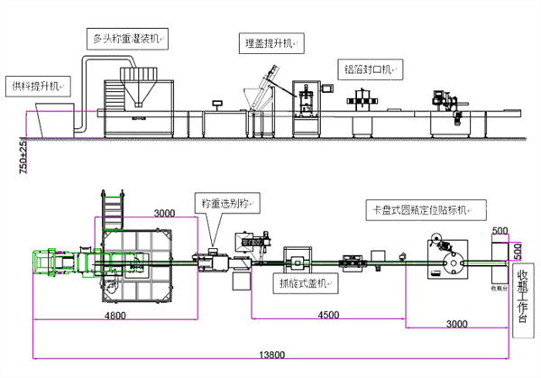 顆粒稱重灌裝封口貼標(biāo)生產(chǎn)線方案設(shè)計